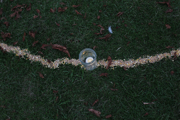 This labyrinth was made from poured corn (led by labyrinth facilitator Kay Barrett) which will be eaten by birds over the coming days.